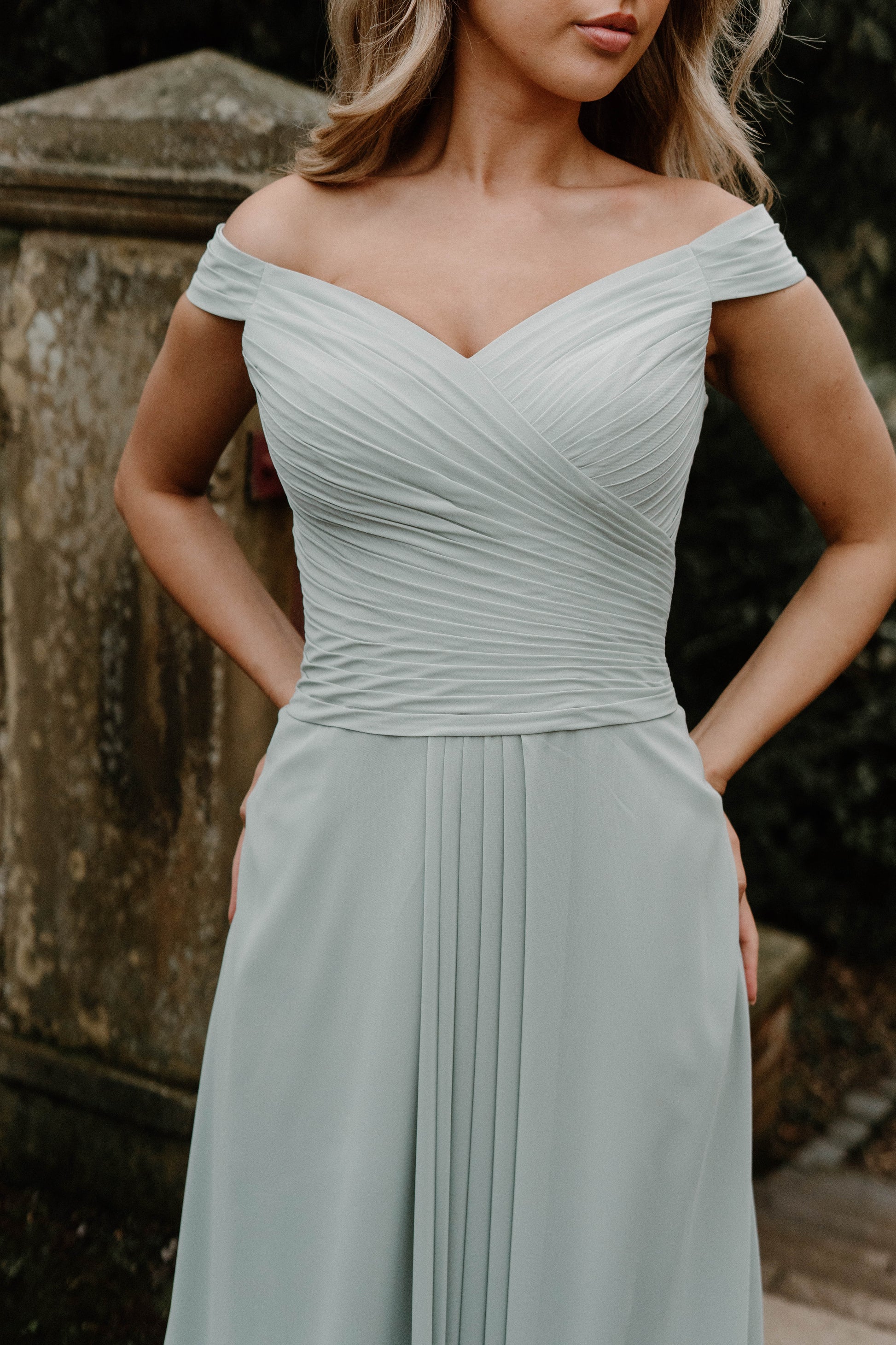 Available in sizes 6-26, these bridesmaid dresses come complete with beautiful ruching detail and stunning off the shoulder strap design. Available in Rose, Purple, Hot Pink, Blush Pink & Red as well as all the colours that Molly comes in. If you have a specific colour in mind, give us a ring and we can help.
